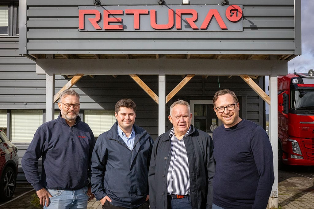 Bygger biogass-stasjon på Spillum: «En lastebil på biogass kan faktisk være et veldig grønt alternativ» sier Hallager. Lars Inge Ekker(Retura), Kristoffer Nordtveit(Molgas), Svein Sund (Molgas) og Sigve Hallager.